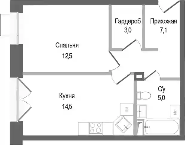 7 640 500 ₽1-к.квартира, 41.5 м², 1 эт.