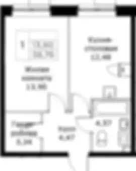 1-к.квартира, 38.76 м², 16 эт. в ЖК КИТ Корпус 1.2