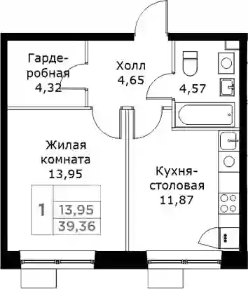 11 095 957 ₽1-к.квартира, 39.36 м², 16 эт.
