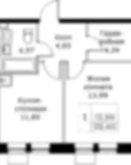 11 794 877 ₽1-к.квартира, 41.39 м², 19 эт.