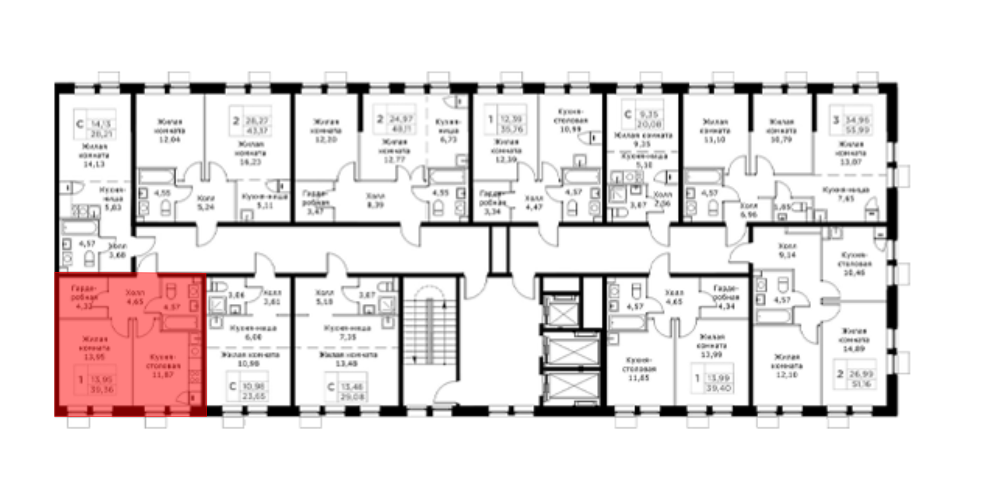 11 051 201 ₽1-к.квартира, 39.36 м², 15 эт.
