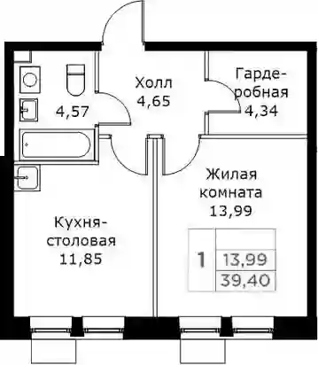 10 239 400 ₽1-к.квартира, 39.19 м², 4 эт.