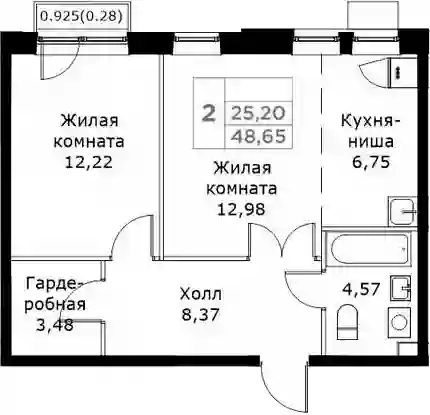 13 398 575 ₽2-к.квартира, 48.37 м², 15 эт.