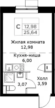 Студия, 25.64 м², 17 эт. в ЖК КИТ Корпус 1.2