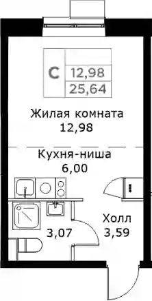 Студия, 25.64 м², 24 эт. в ЖК КИТ Корпус 1.2