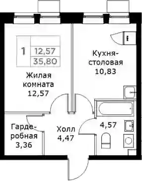 12 165 072 ₽1-к.квартира, 35.8 м², 25 эт.