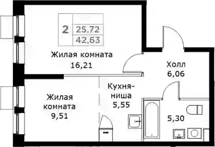 2-к.квартира, 42.63 м², 25 эт. в ЖК КИТ Корпус 3