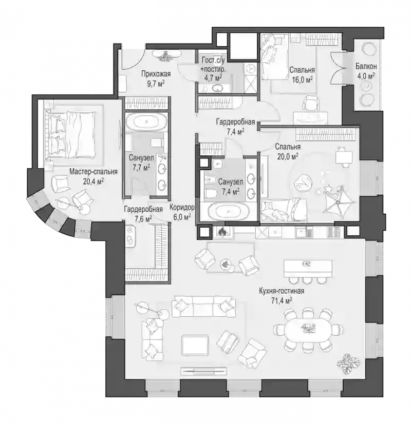 3-к.квартира, 179.5 м², 5 эт. в ЖК Клубный дом «Чистые Пруды» Корпус 1
