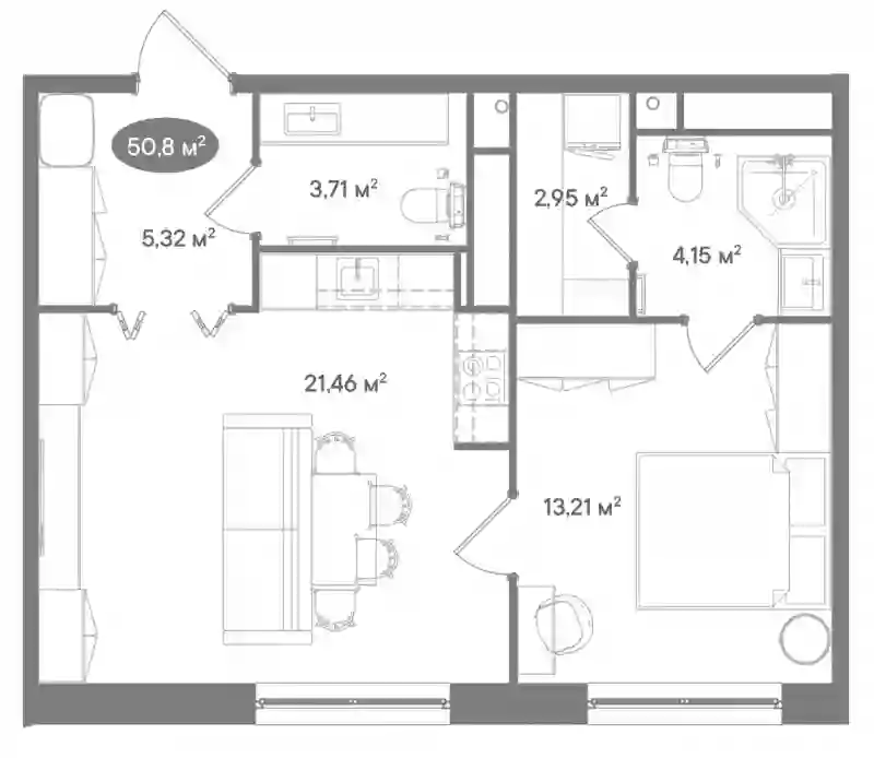 2-к.квартира, 50.8 м², 13 эт. в ЖК Клубный дом D'ORO MILLE Корпус 1