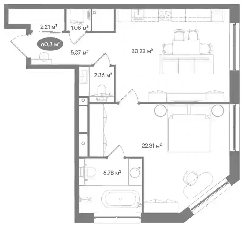 73 609 800 ₽1-к.квартира, 58.7 м², 22 эт.
