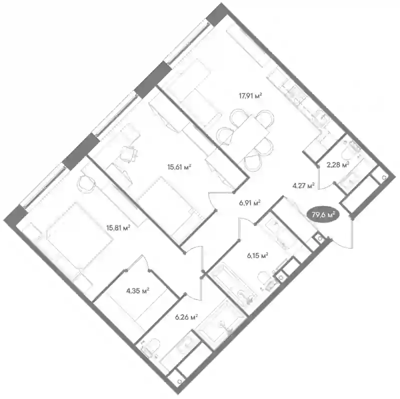3-к.квартира, 79.55 м², 12 эт. в ЖК Клубный дом D'ORO MILLE Корпус 1