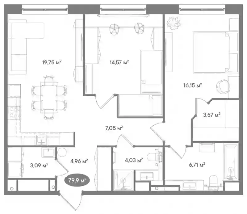 3-к.квартира, 79.88 м², 5 эт. в ЖК Клубный дом D'ORO MILLE Корпус 1