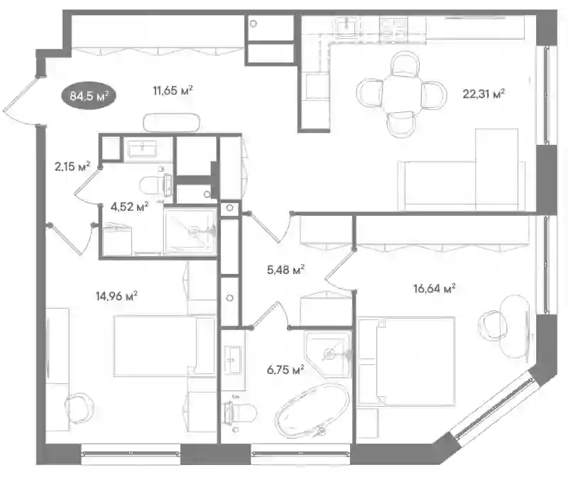 В проекте«D'oro Mille»предусмотрено множество планировочных решений с высотой потолков от 3 метров. Жилой комплекс содержит несколько пентхаусов с террасами. Предусмотрена подчистовая отделка с возможностью дозаказа дизайнерской.