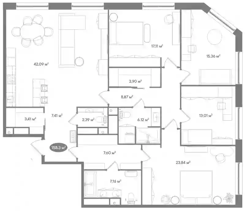 5+к.квартира, 158.27 м², 8 эт. в ЖК Клубный дом D'ORO MILLE Корпус 1