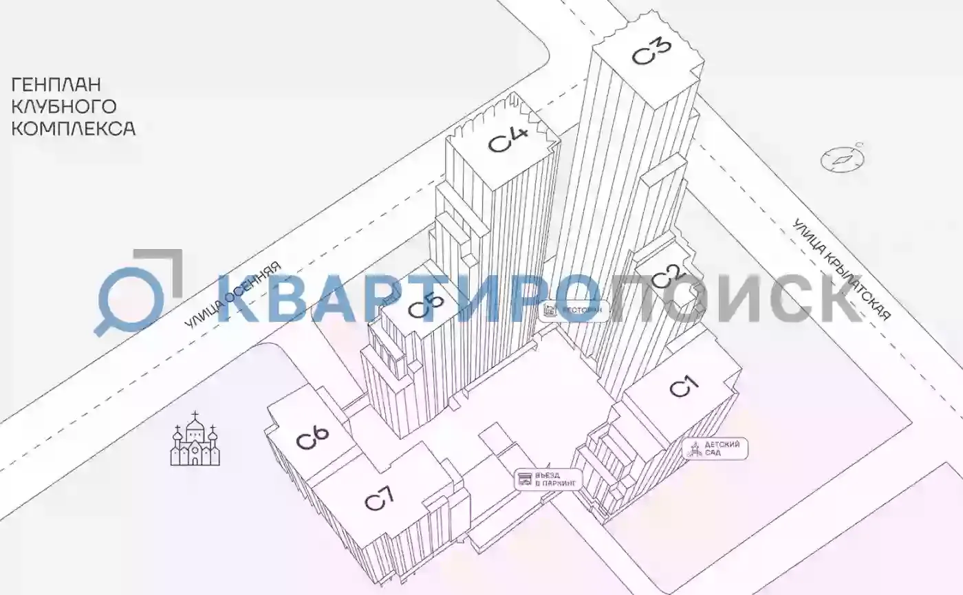 Дизайн ландшафта состоит из уютных приватных зон и безопасных водных элементов, включая декоративные пруды и сухие фонтаны. На территории создан гипоаллергенный сад с крупномерными деревьями и кустарниками. Для детей оборудована современная детская площадка с интересными игровыми элементами, а для взрослых — удобные спортивные площадки для активного отдыха. В комплексе предусмотрен круглосуточный ресепшен и видеонаблюдение за общественными зонами и периметром. Для владельцев автомобилей предусмотрен подземный паркинг.
