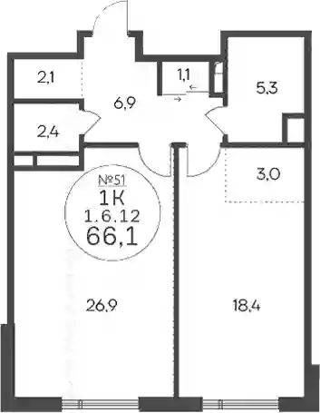 2-к.квартира, 66.1 м², 6 эт. в ЖК Клубный квартал КРЫЛАТСКАЯ 33 Корпус 1