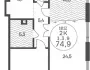 2-к.квартира, 74.9 м², 3 эт. в ЖК Клубный квартал КРЫЛАТСКАЯ 33 Корпус 1