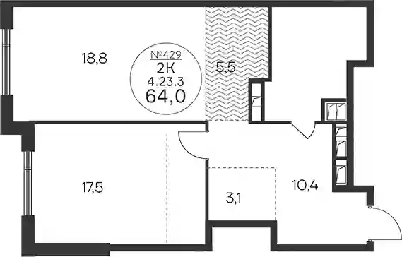 2-к.квартира, 64 м², 23 эт. в ЖК Клубный квартал КРЫЛАТСКАЯ 33 Корпус 2