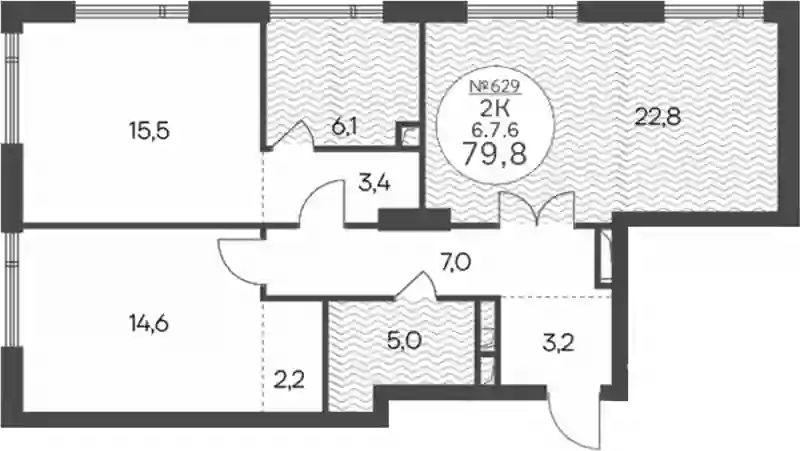 2-к.квартира, 79.8 м², 7 эт. в ЖК Клубный квартал КРЫЛАТСКАЯ 33 Корпус 3