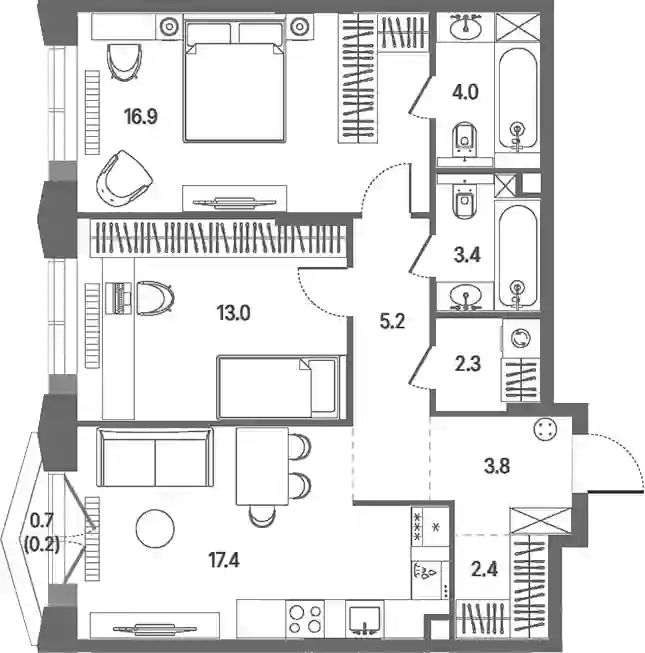 68.4 м2
