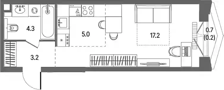 Планировочные решения включают разнообразные форматы квартир, рассчитанные на разный образ жизни: от 28 до 383 кв. м с потолками от 3 м. Квартиры представлены без внутренних стен, позволяя реализовать собственные дизайнерские решения. Разработка проекта ведется с учетом поэтапного ввода: на первом этапе возводятся 2 корпуса на 807 квартир с продуманными планировками и инженерными узлами.