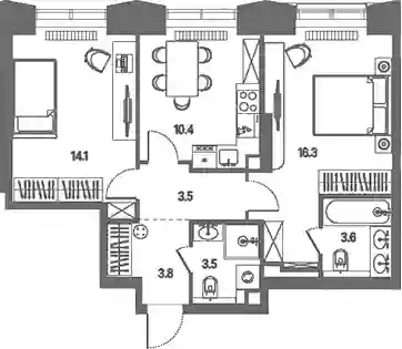 Планировочные решения включают разнообразные форматы квартир, рассчитанные на разный образ жизни: от 28 до 383 кв. м с потолками от 3 м. Квартиры представлены без внутренних стен, позволяя реализовать собственные дизайнерские решения. Разработка проекта ведется с учетом поэтапного ввода: на первом этапе возводятся 2 корпуса на 807 квартир с продуманными планировками и инженерными узлами.