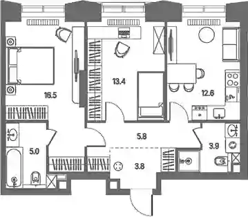 Планировочные решения включают разнообразные форматы квартир, рассчитанные на разный образ жизни: от 28 до 383 кв. м с потолками от 3 м. Квартиры представлены без внутренних стен, позволяя реализовать собственные дизайнерские решения. Разработка проекта ведется с учетом поэтапного ввода: на первом этапе возводятся 2 корпуса на 807 квартир с продуманными планировками и инженерными узлами.