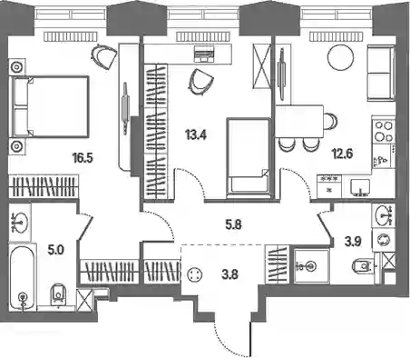 Планировочные решения включают разнообразные форматы квартир, рассчитанные на разный образ жизни: от 28 до 383 кв. м с потолками от 3 м. Квартиры представлены без внутренних стен, позволяя реализовать собственные дизайнерские решения. Разработка проекта ведется с учетом поэтапного ввода: на первом этапе возводятся 2 корпуса на 807 квартир с продуманными планировками и инженерными узлами.