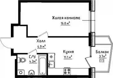 9 184 372 ₽1-к.квартира, 37.9 м², 1 эт.