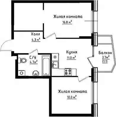 10 311 895 ₽1-к.квартира, 43.3 м², 1 эт.