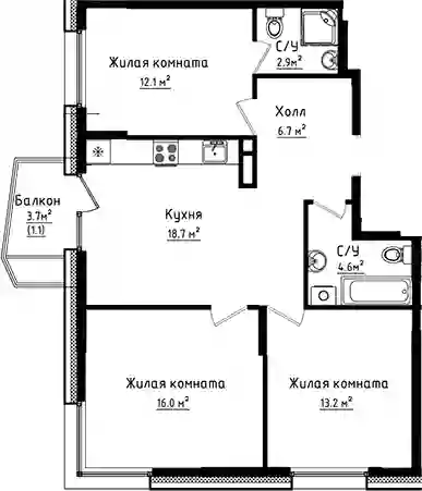 В проекте представлены студии и квартиры с 1–3 спальнями, а также европланировки. Помещения идут с потолками от 3 до 3,3 метров. В увеличенных оконных проемах установлены двухкамерные стеклопакеты из усиленного ПВХ-профиля. В квартирах выполнена чистовая отделка: на выбор предлагаются светлая и темная палитры. Пространства готовы к финальному обустройству и заселению.
