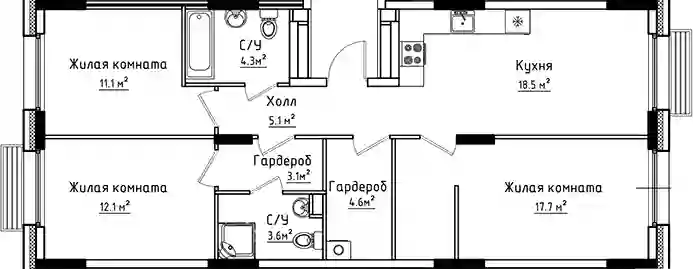 15 594 480 ₽3-к.квартира, 79.2 м², 1 эт.
