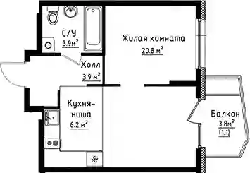 8 383 870 ₽1-к.квартира, 38.3 м², 2 эт.
