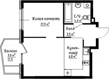 8 868 365 ₽1-к.квартира, 38.3 м², 2 эт.