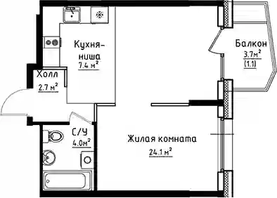 9 859 410 ₽1-к.квартира, 41.4 м², 1 эт.