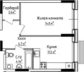 7 650 115 ₽1-к.квартира, 37.9 м², 1 эт.