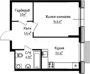 11 428 560 ₽1-к.квартира, 43.3 м², 2 эт.