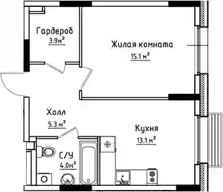 1-к.квартира, 41.4 м², 1 эт. в ЖК Коллекция Корпус 15.2