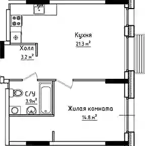 9 816 290 ₽1-к.квартира, 38.3 м², 1 эт.