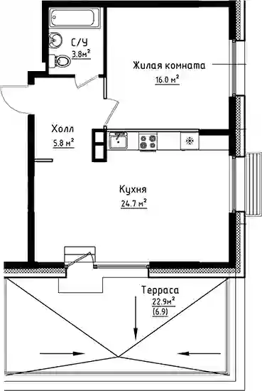 11 240 680 ₽1-к.квартира, 43.3 м², 1 эт.