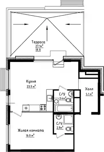 8 313 690 ₽2-к.квартира, 35.4 м², 1 эт.