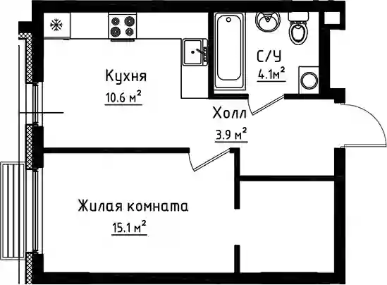 7 534 890 ₽2-к.квартира, 35.4 м², 1 эт.