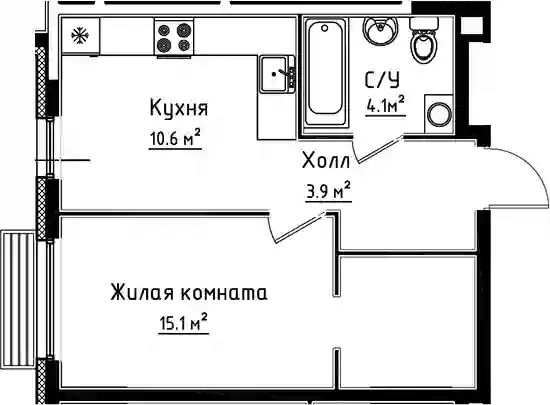 7 534 890 ₽2-к.квартира, 35.4 м², 1 эт.