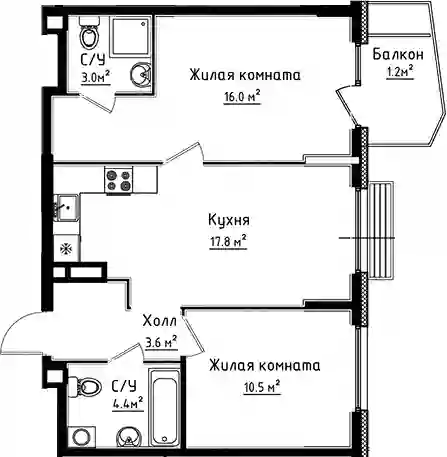 11 172 480 ₽2-к.квартира, 54 м², 3 эт.