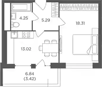 1-к.квартира, 40.88 м², 26 эт. в ЖК Корпус 1
