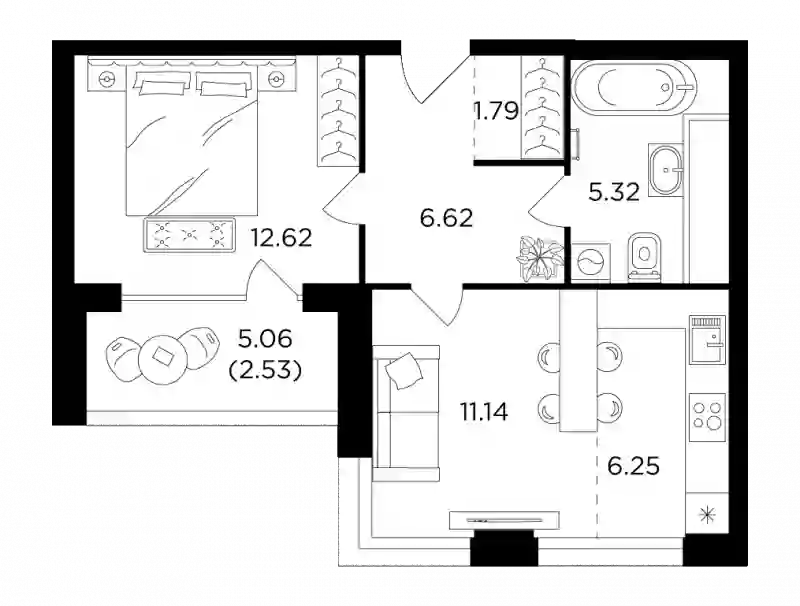 2-к.квартира, 43.97 м², 29 эт. в ЖК Корпус 1