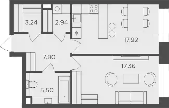 1-к.квартира, 54.76 м², 9 эт. в ЖК Корпус 7