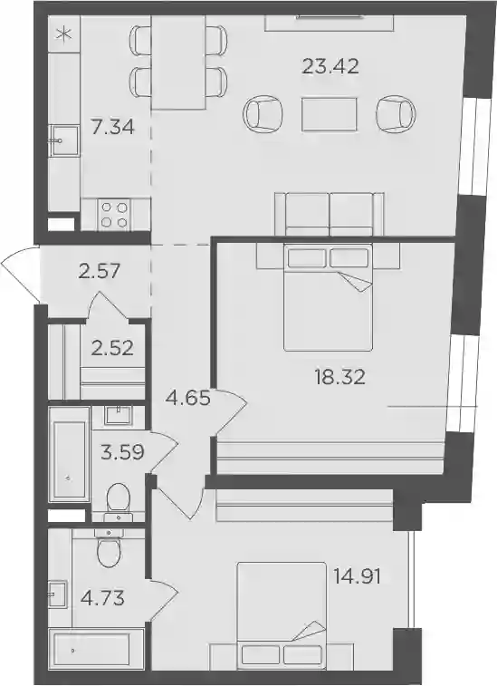 48 780 000 ₽3-к.квартира, 73.62 м², 7 эт.
