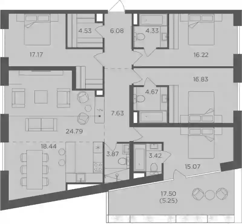 77 311 690 ₽5+к.квартира, 143.3 м², 44 эт.