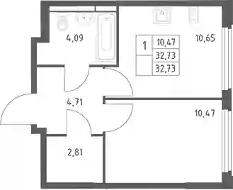 1-к.квартира, 32.73 м², 15 эт. в ЖК Космический Квартал Корпус 1